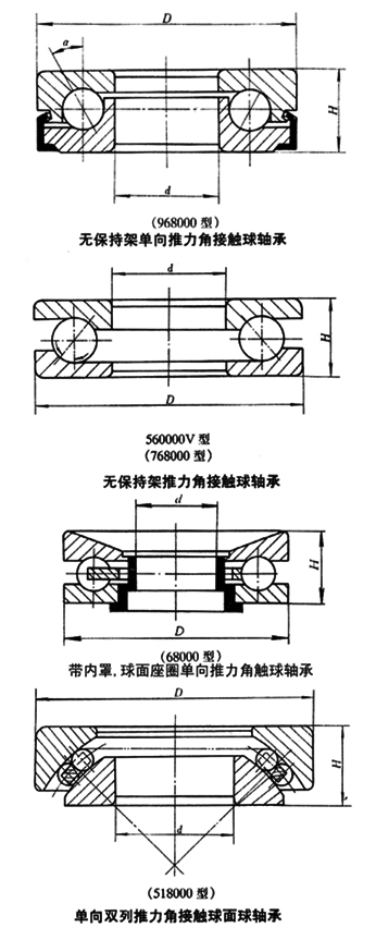 推力角接触球轴承接触角一般为60°常用的推力角接触球轴承一般为双向推力角接触球轴承,主要用于精密机床主轴,一般与双列圆柱滚子轴承一起配合使用,可承受双向轴向载荷,具有精度高,刚性好,温升低,转速高,装拆方便等优点。